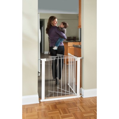 Regalo 1158 DS 56-in x 30-in White Metal Safety Gate. Now that baby is on the move the safety gate makes it simple and safe to create child-friendly areas within your home.